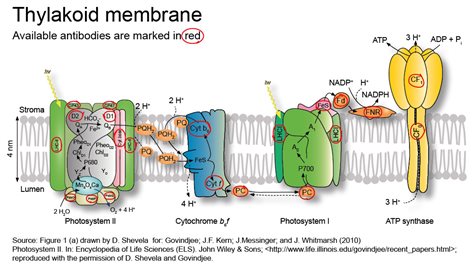 ATP合酶在光合作用過程中通過電子傳遞鏈釋放的能量,將質(zhì)子穿過膜至ATP合成。其中ATP合酶包括9種蛋白:AtpA,AtpB,AtpC,AtpD,AtpE,AtpI,AtpF,AtpG,AtpH。由CF1和CF0兩個(gè)復(fù)合物組成。CF1包含α, β, γ, δ, ε五個(gè)亞基,分別由atpA,atpB, atpC, atpD, atpE基因編碼;CF0包含IV/a, I/b, II/b, III/c 四個(gè)亞基,分別由atpI, atpF, atpG, atpH基因編碼。ATP合酶各蛋白相關(guān)抗體見下表(僅列舉部分產(chǎn)品):