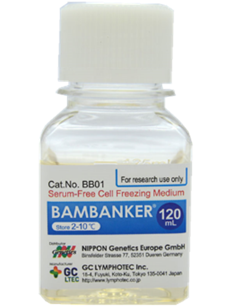 Bambanker?是歐洲專利配方無血清細胞凍存液,幾乎適用任何類型細胞,包括原代細胞、干細胞、淋巴細胞以及常規(guī)細胞系等,該產(chǎn)品已在50多個同行評審出版物中被引用,獲得全球用戶的一致好評。目前,日本細胞庫用Bambanker?凍存超過1300種不同細胞系,有些細胞用Bambanker?凍存超過5年其復蘇活率仍可達到80%以上。相比于傳統(tǒng)用血清凍存細胞的方法,用Bambanker?凍存細胞有無法比擬的優(yōu)勢,主要包括: