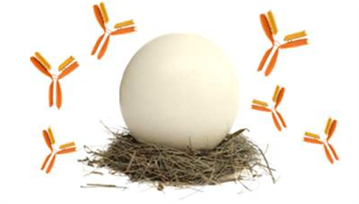 西美杰代理的Exalpha品牌的特色產(chǎn)品是雞多克隆抗體IgY,雞不僅可以在血清中產(chǎn)生免疫球蛋白,在蛋黃中也能產(chǎn)生高滴度的免疫球蛋白。因此,Exalpha只需要收集雞蛋就可以從抗原免疫過的母雞身上獲得抗體,避免了通常所用的采血方式來獲取抗體。與傳統(tǒng)的哺乳動(dòng)物產(chǎn)生的多克隆抗體相比,雞多克隆抗體IgY有諸多優(yōu)勢(shì):