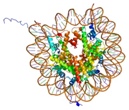 其中組蛋白(Histone)的修飾作用是表觀遺傳學(xué)研究的一個重要領(lǐng)域。Histone H3與H2A、H2B和H4一起參與真核細(xì)胞中染色質(zhì)的結(jié)構(gòu)。組蛋白H3通過承受幾種不同類型的表觀遺傳修飾,參與并影響許多細(xì)胞進(jìn)程,如轉(zhuǎn)錄激活/失活、染色體包裝、DNA損傷/修復(fù)。這些修飾,包括甲基化、瓜氨化、乙?;?、磷酸化、小泛素相關(guān)修飾化、泛素化及二磷酸腺苷核糖基化。主要發(fā)生在組蛋白H3的N末端尾區(qū)域上,這導(dǎo)致核小體結(jié)構(gòu)重構(gòu)成更容易接近的開放構(gòu)象的轉(zhuǎn)錄復(fù)合物。在大多數(shù)物種中,組蛋白H3主要在賴氨酸9,14,18,23和56處乙?;? 在賴氨酸4,9,27,36和79處甲基化; 并分別在ser10,ser28,Thr3和Thr11磷酸化。組蛋白修飾的深入研究能更好地了解細(xì)胞過程的表觀遺傳調(diào)控。