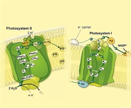 光合作用高效的吸能、傳能、轉(zhuǎn)能過程是在光合膜上具有一定分子排列空間構(gòu)象的色素蛋白復合體上進行的,并在10-15秒至10-7秒內(nèi)完成。整合于光合膜上的色素蛋白復合物根據(jù)功能通常分為:光系統(tǒng)I(PSI)、光系統(tǒng)II(PSII)、Cytb6f復合物以及ATP合成酶復合物。在這4個色素蛋白復合體共同參與下,光合作用的光反應完成電子從H2O到NADP+的傳遞并產(chǎn)生ATP和釋放O2。PSI和PSII是生物光能轉(zhuǎn)換的重要場所,涉及水裂解放氧反應和原初電荷分離等關鍵步驟,是決定光合作用效率的重要部位。