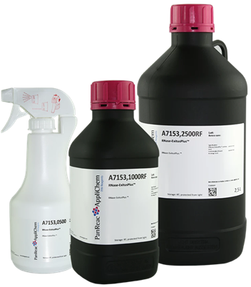 在mRNA疫苗的生產(chǎn)以及其他與mRNA相關(guān)的生物制品中,RNase污染的清除尤為重要,德國(guó)Applichem研發(fā)的RNase-ExitusPlus?是一種非堿性、無(wú)腐蝕性且無(wú)致癌性的新型RNase清除液,它對(duì)RNase污染物具有很好的清除性能,是適用于任何表面的即用型RNase污染清除液,可用于實(shí)驗(yàn)室表面的清潔,如實(shí)驗(yàn)操作臺(tái)、電泳設(shè)備、移液器和反應(yīng)管等。