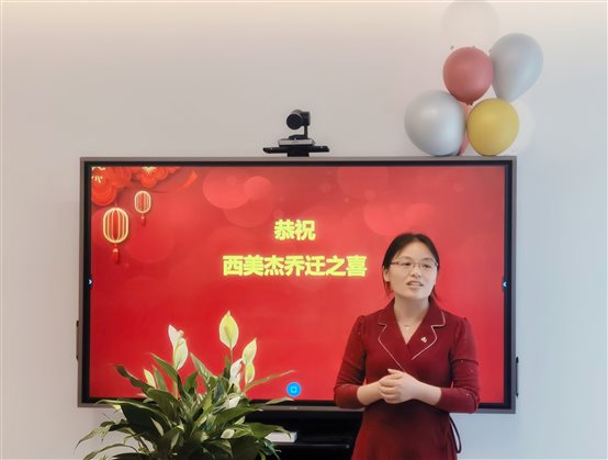為了配合國家的疫情防控政策,公司在總部辦公室進行了簡短的慶祝儀式??偨?jīng)理助理張柳主持會議,部分員工代表參加,公司董事長晏曉梅、公司總經(jīng)理房浩霞分別致辭,慶祝公司喬遷之喜,肯定了行政部門以及參與辦公室裝修、遷址等各項工作的同事們的努力付出。疫情當(dāng)下,再次表達了對所有員工多年如一日的執(zhí)著堅守的感謝,正是有你們的付出和努力,才使得公司各項業(yè)務(wù)能夠有條不紊的開展。最后,重點感謝西美杰所有的業(yè)務(wù)伙伴,感謝16年的相守和肯定,未來我們將全力以赴,定不負所望。