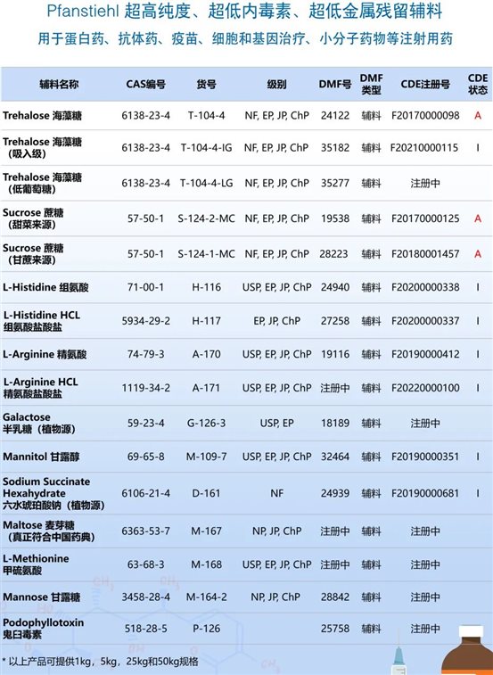 本次論壇西美杰將重點(diǎn)展出Pfanstiehl將高純度低內(nèi)毒素注射用糖類(lèi)及氨基酸等十余種輔料產(chǎn)品。