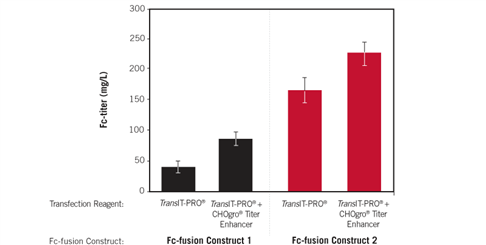 圖4. 加入CHOgro? Titer Enhancer后,CHO細(xì)胞Fc融合蛋白的產(chǎn)量有顯著提升