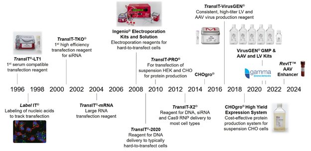 ? ? ? ?美國Mirus公司成立于1995年,是世界上很早開發(fā)高效、低毒轉(zhuǎn)染試劑的公司,同時(shí)也是該類試劑的主要供應(yīng)商之一。其產(chǎn)品線涵蓋化學(xué)轉(zhuǎn)染試劑、電轉(zhuǎn)染產(chǎn)品、病毒生產(chǎn)和轉(zhuǎn)導(dǎo)產(chǎn)品,適用于基因功能研究、蛋白生產(chǎn)、病毒載體生產(chǎn)和動(dòng)物模型構(gòu)建等領(lǐng)域。Mirus被公認(rèn)為轉(zhuǎn)染試劑開發(fā)的領(lǐng)跑者,其許多杰出成果獲得世界公認(rèn)與廣大用戶的好評(píng)。