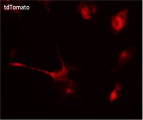 tdTomato是由兩個mCherry單體串聯(lián)表達(dá)的二聚體,這種設(shè)計是為了降低蛋白質(zhì)聚集,提高熒光強(qiáng)度,并且減少對細(xì)胞或?qū)嶒?yàn)動物的毒性。因此,tdTomato在活體實(shí)驗(yàn)中更為常用,它提供了一種更為穩(wěn)定和強(qiáng)烈的紅色熒光標(biāo)記。