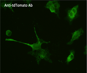 HEK293細(xì)胞轉(zhuǎn)染cDNA后用4%PFA固定,然后用1/50稀釋的anti-tdTomato抗體做免疫熒光的結(jié)果