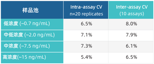 對已知濃度的4個樣品池進行批內(Intra-assay)和批間(Inter-assay)精確性評估。