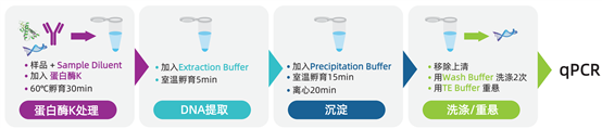 ? All-in-one kit支持從樣品到qPCR的全過程—試劑盒中包含了DNA提取試劑(試管法或孔板法),AccuRes? PCR體系預混液,引物/探針預混液和DNA標準品