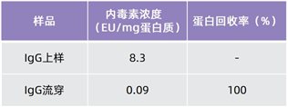 EtoxiClear?具有很高的內(nèi)毒素清除率,可從多種蛋白樣品中進行出色的蛋白質(zhì)回收,如下表所示的人血清白蛋白(HSA)和免疫球蛋白(IgG)溶液(均為~9 mg/mL)。