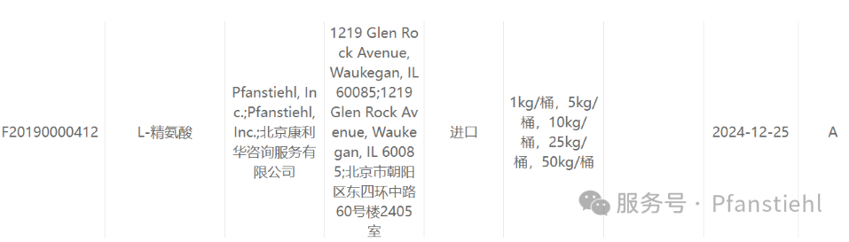 “ 熱烈祝賀Pfanstiehl品牌注射級精氨酸A-170 CDE注冊登記號F20190000412已激活!”Pfanstiehl新年喜訊頻傳,注射級精氨酸A-170 CDE登記號F20190000412激活了。Pfanstiehl品牌注射級精氨酸A-170,秉承一貫高品質(zhì)理念,具有超高純度,超低內(nèi)毒素,超低金屬殘留的特點(diǎn),單獨(dú)檢測29種金屬離子,并且新增DNA,RNA,DNA酶,RNA酶和脂肪酶,亞硝酸鹽等多項(xiàng)質(zhì)量指標(biāo)的檢測,符合多國藥典規(guī)定(USP, EP, JPE, ChP),可用于生物治療性藥物和疫苗的生產(chǎn)。· 產(chǎn)品名稱: L-Arginine, High Purity, Low Endotoxin,