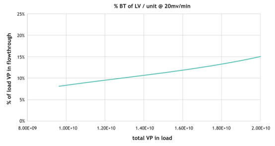 Figure 3. At 15% breakthrough, the dynamic binding capacity per spin column is 1.9E+10. The Nereus LentiHERO? spin column was loaded at a flow rate of 20 mV/min, and the flow-through was collected in 10 mL of liquid. Using p24 ELISA for analysis, the percentage of VP breakthrough was calculated based on the total VP loaded.