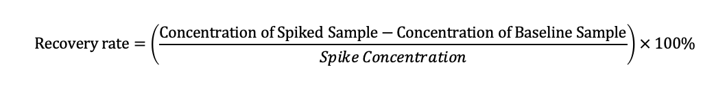 (Tips: Spike-and-recovery analysis must be performed for each type of sample matrix. Meanwhile, if the experimental procedure is optimized, this experiment needs to be repeated to ensure the validity of the detection.)