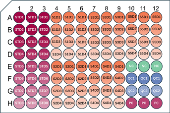 l A rational microplate layout should be planned before conducting an ELISA assay: an optimized microplate layout enables the monitoring of key performance indicators and faster troubleshooting when issues arise. For more plate layout examples, please click here to access them.