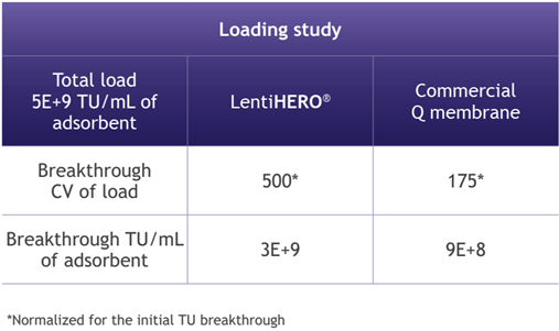82% lentiviral recovery with yields > 2E+9 TU/mL of adsorbent and > 90% dsDNA/HCP clearance